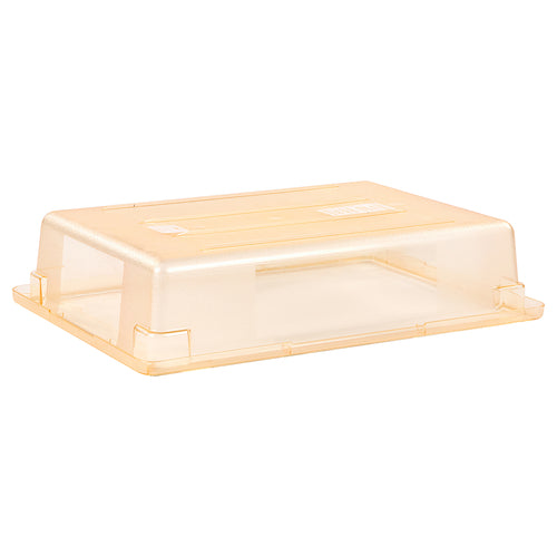 StorPlus™ Food Storage Box, 8-1/2 gallon, 26"L x 18"W x 6"H, color-coded, reinforced corners, stackable, date indicators, easy-grip handles, break-resistant, dishwasher safe, textured non-slip finish, polycarbonate, transparent, yellow, NSF, Made in USA