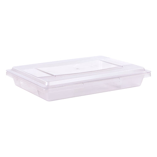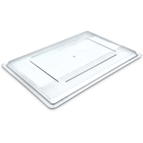 StorPlus™ Food Storage Lid, 26"L x 18"W, reinforced corners, lock-tight, stackable, reversible-use as a bun pan/tray, break-resistant, date indicator, textured non-slip finish, dishwasher safe, polycarbonate, clear, NSF, Made in USA
