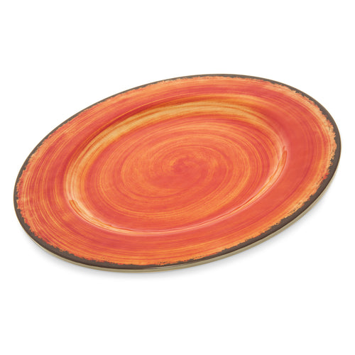 Mingle™ Dinner Plate, 11" dia., swirl design, dishwasher safe, stain and chip resistant, resists drawing heat or cold away from food, reinforced rim and foot design, stackable, safe for temperatures up to 212°F, melamine, fireball, BPA Free, NSF