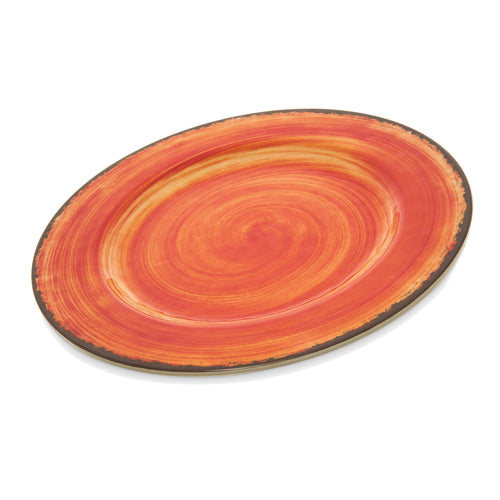 Mingle™ Salad Plate, 9" dia., round, swirl design, dishwasher safe, stain and chip resistant, resists drawing heat or cold away from food, reinforced rim and foot design, stackable, safe for temperatures up to 212°F, melamine, fireball, BPA Free, NSF