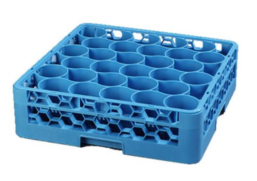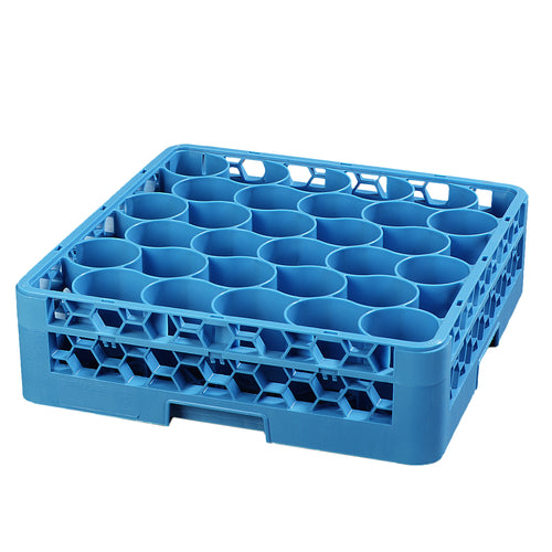 OptiClean™ NeWave™ Dishwasher Glass Rack, 30-rounded compartments with integrated extender, full-size, holds glasses up to 2-7/8" in diameter with inside height of 5.5", double-wall construction, quick draining, positive stacking, four-way tracking, comfort curve handles on all 4 sides, polypropylene, textured finish, blue, NSF