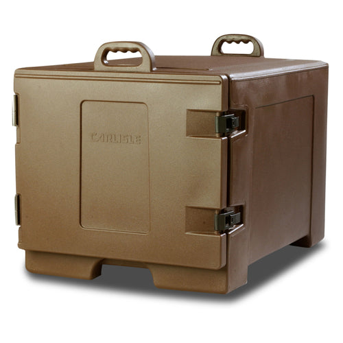Cateraide™ Sheet Pan and Tray Carrier, side loader, individual tracks, holds (7) 18" x 26" trays, insulated, stain & scratch-resistant, heat-resistant to 200°F, automatic self-venting system, molded-in handles, stackable, polyethylene, brown, NSF, Made in USA