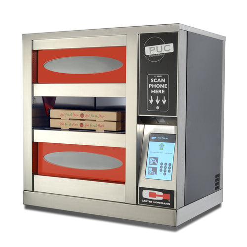 PUC Smart Order Carry-out Pizza Cabinet, countertop, heated, pass-through, (3) 7”H x 21”D x 21”W compartments with product sensors, customer & operator facing control tablets with QR code scanner, auto-open/auto-close doors, (2) ethernet jacks, stainless steel construction, 120v/60/1-ph, NEMA 5-15P, cETLus, ETL-Sanitation, CE, Made in USA (contact factory for price)