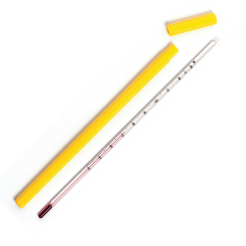 Chocolate Tempering Thermometer, 40 to 130°F, waterproof, laboratory glass, non-mercuric column, case