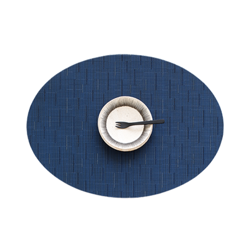 Bamboo Collection Table Mat, 14" x 19-1/4", oval, Microban® antimicrobial protection, TerraStrand™ woven vinyl, lapis, Made in USA (minimum order 4 each)