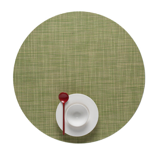 Mini Basketweave Collection Table Mat, 15" dia., round, Microban® antimicrobial protection, TerraStrand™ woven vinyl, dill, Made in USA (minimum order 4 each)