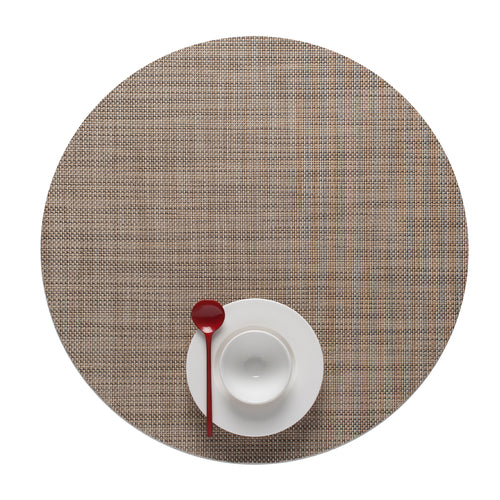 Mini Basketweave Collection Table Mat, 15" dia., round, Microban® antimicrobial protection, TerraStrand™ woven vinyl, linen, Made in USA (minimum order 4 each)