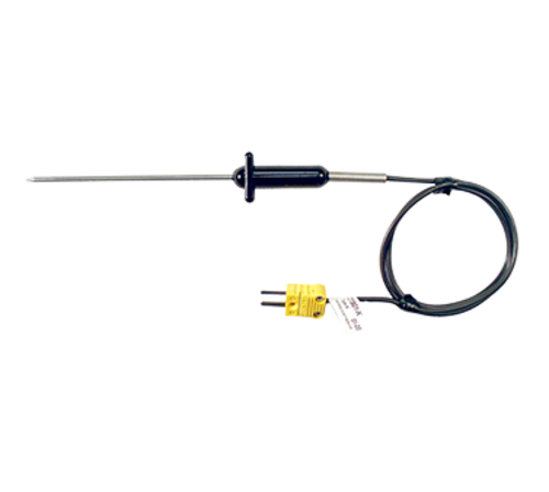 Economy Needle Probe /4" (102mm) shaft length, 1/8" (3mm) shaft and tip dia., -40° to 400°F (-40° to 205°C) temperature range, response time 6 seconds in liquid, 24" (610mm) cable length, Type K (Atkins)