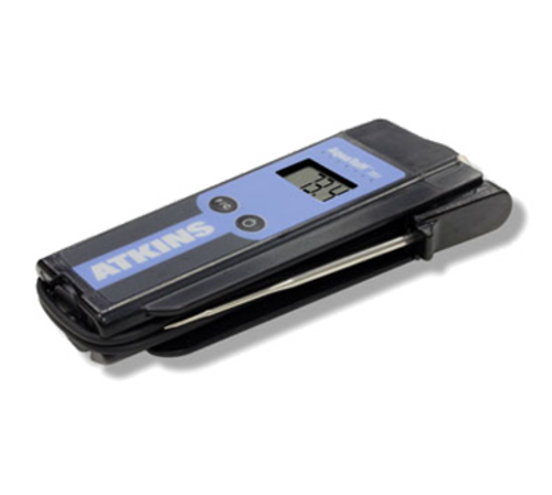 AquaTuff™ Waterproof Thermocouple, digital, with Wrap&Stow™ DuraNeedle™ probe, temp. range -100 to 500°F (-73 to 260°C), ±0.9°F (±0.5°C) total system at ambient temperatures between 68° to 86° (20° to 30°C) temperature accuracy, auto shut-off, LCD display, ABS plastic housing, 7-1/8" x 2-3/4" x 1-1/3" (181mm x 70mm x 33mm), .45 lb./ 204g weight, (2) AAA batteries included, NSF, CE, RoHS, WEEE (Atkins)