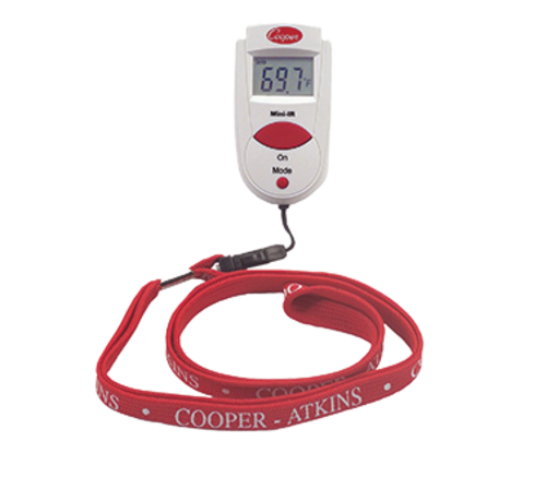 Mini Infrared Thermometer, -27° to 428°F/-32 to 220°C, ±3.6 °F (±2.0°C) temperature accuracy, includes key ring & lanyard, 1:1 optics, 1-7/16" x 3/4" x 2-11/16" (36.5mm x 19mm x 68mm), CE, RoHS, WEEE (Cooper)