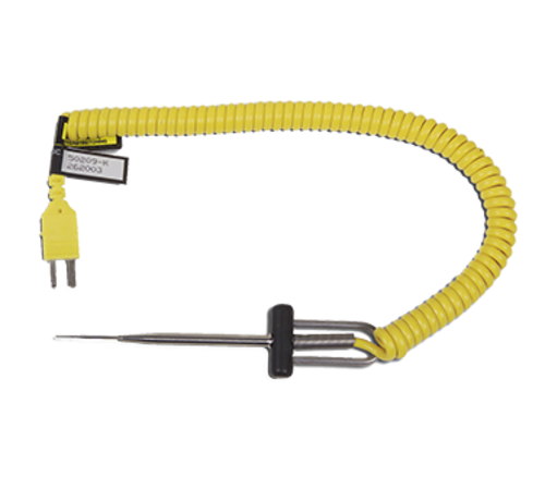Micro Hemi-Tip Probe, rounded tip, -100° to 500°F/-73° to 260°C temperature range, response time 1 second in liquid, 3-1/2" (89mm) shaft length, 3/16" (4.8mm) shaft dia., .043" (1mm) tip dia., 48" (1.2m) extended & 12" (305mm) retracted cable length, Type K (J MTO) (Atkins)