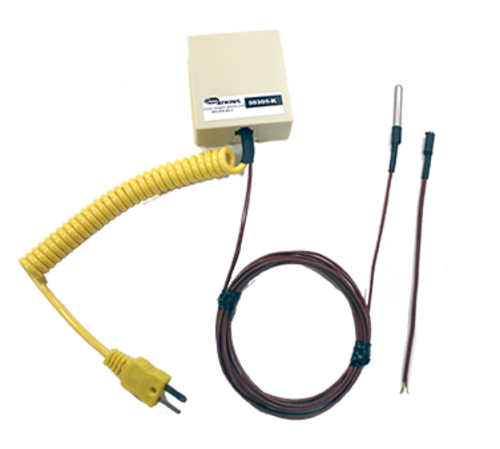 Freezer/Cooler Probe, 1" (25.4mm) shaft length, .188" (4.8mm) shaft and tip dia., -40° to 400°F/-40° to 205°C temperature range, response time 25 seconds in air, 24" (610mm) coil cable length, 6" (152mm) extended, 8' (2.4m) cable length sensor, mountable, Type K thermocouple (MTO) (J & T) (Atkins)