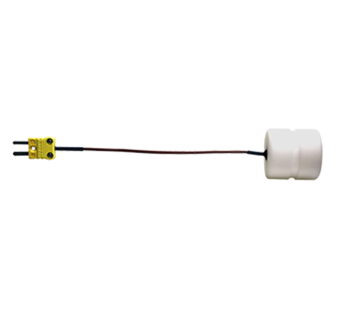 Thermocouple Solid Simulator, 1-1/2" x 1-1/2" dia., -40° to 180°F/-40° to 82°C, simulate food temperature in changing ambient conditions of any refrigerator, freezer, walk-in or delivery truck, flexible cable with teflon jacket, 12" cable tie for mounting, display when plugged into any Type K thermocouple instrument, 6" cord, FDA approved (Atkins)