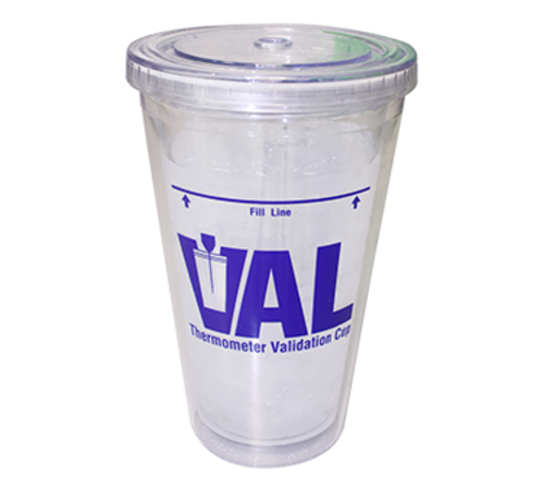 Valcup™ Thermometer Validation Cup, 6-1/4"H, fill line, lid, designed to accurately validate all types of thermometers, imprinted instructions, dishwasher safe, BPA Free, acrylic (12 each per case) (Cooper)