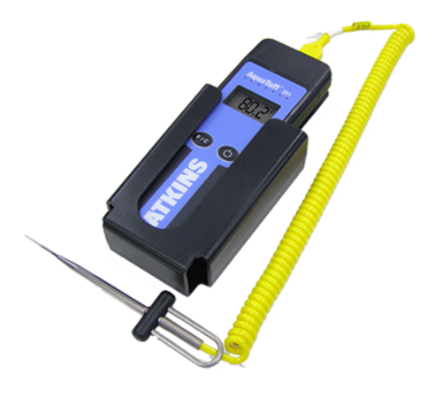 AquaTuff™ Kit, 6-1/2" x 1-1/4" x 2-1/4" (16.5cm x 3.1cm x 5.7cm), temperature range -100° to 999°F (-73° to 537°C), ±0.5°F (±0.3°C) temperature accuracy, with 35100-K waterproof digital thermocouple, 50209-K micro hemi-tip probe & 9369 bracket (Atkins)