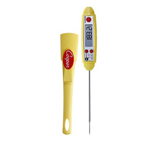 MAX Pocket Test Thermometer, digital type, LCD display, 4" stem length, -40 to 450°F/C temperature capacity, ±1°F/0.5°C from 32° to 212°F (0° to 100°C) temperature accuracy, auto shut-off after 10 minutes, reduced tip, 6 second response time, low battery indicator, waterproof, dishwasher safe, with antimicrobial protective sheath and pocket clip,1.5v/#LR44 battery type included, anti-microbial additive, NSF, CE, RoHS, WEEE (36 master carton) (Cooper)