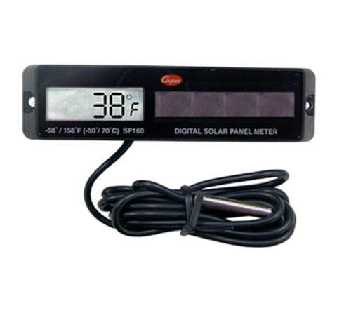 Thermometer, solar powered, panel type, 4-1/2" x 1-1/8" x 5/8" (11.4 x 2.9 x 1.6cm), -58 to 158°F/-50° to 70°C temperature range, ±2°F/ ±1°C temperature accuracy, response time 30 seconds, 48" (121.9cm) cable length, black, battery backup type: 1.5v AAA battery (Cooper)