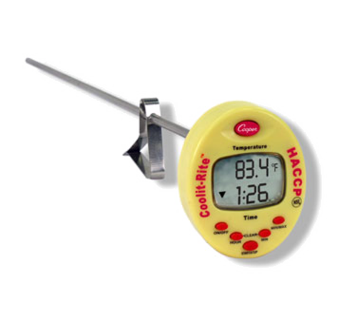 Coolit-Rite™ Cooling Validator, 15" (38.1cm) shaft length, 0.2" (5mm) shaft dia., -4° to 302°F/-20° to 150°C temperature range, temperature accuracy ±2°F, ±3°F above 212°F/±1°C, ±1.5°C above 100°C, response in less than 6 seconds, 6 hour & 59 min. timer range, waterproof, antimicrobial additive, 1.5v LR44 battery, NSF, CE, RoHS, WEEE (6 master carton) (Cooper)