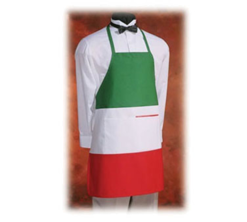 Italian Bib Apron, 28" W x 30"L, green, white & red, poly/cotton twill blend