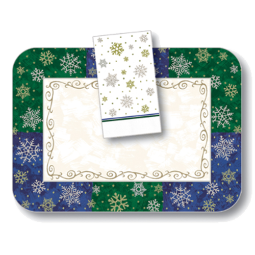 Dinner Napkin, 15" x 17", 1/8 fold, 2-ply, facial quality, paper, silver & gold snowflakes design (pack of 100)