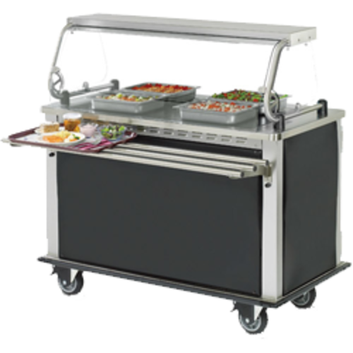 Hold-N-Serv™ MealtimeXpress™ Delivery Cart, 49"W x 28-1/8"D x 62"H, (37-13/16"H work height), (1) compartment accommodates (8) full size pans, (1) refrigerated compartment accommodates (8) full size pans, breath guard with shelf, push handle, stainless steel construction, full perimeter bumper, (4) 6" swivel casters (2 braked), ETL-Sanitation, cETLus