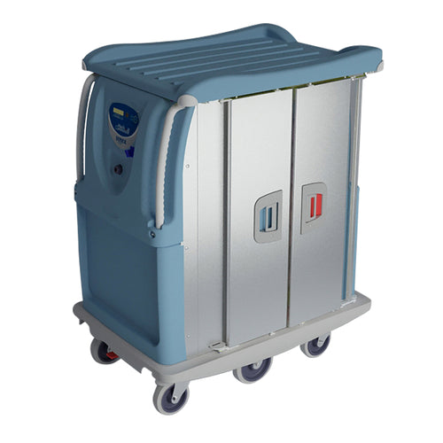 Meals on Command™ Hot/Cold Cart Meal Delivery System, (4) insulated doors with color coded handles, 2-compartments, 55-3/5H", (20) 13" x 21" tray capacity, 3-1/2" spacing, LCD with hot and cold temperature display, active hot/cold temperature holding convection heat on hot side, forced air on cold side, insulated center with removable air dams, (6) casters (2) 8" stationary with central break (4) swivel, 2050 watts, 120v/60/1-ph, 20 amps, cord with NEMA 5-20P, ETL (MOCII20)