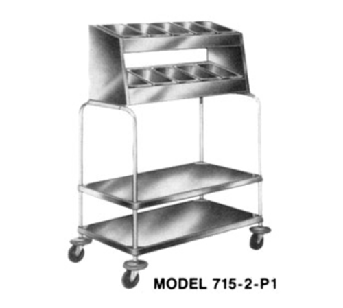 Tray & Silver Cart, (2) stack with (8) pan silver dispenser, open style, capacity (200) 15-1/4" x 20-1/2" trays, stainless steel shelf, tubular stainless steel frame, 4" swivel casters