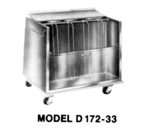 Dish Cart, (2) compartment extra low, maximum dish size 10", enclosed with doors & hinged top, tubular frame with stainless steel shelf, 23" long, 4" swivel casters