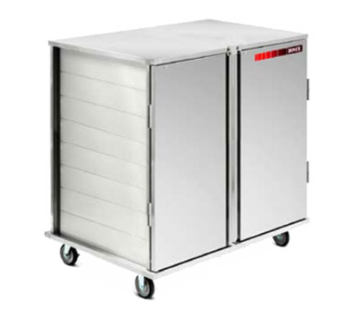 TQ Economy Tray Delivery Cart, low profile, (2) door, 2-compartment, 35-3/5"H, enclosed, (20) tray capacity, designed to hold multiple sizes (Architectural Plastics® & Dinex® room service trays), fixed tray slides with 5-1/4" spacing, two trays per slide, pull door handle, magnetic transport latch, (4) silent soft tread 5" casters (2 fixed & 2 swivel with brakes), stainless steel, CSA (PSC/202D)