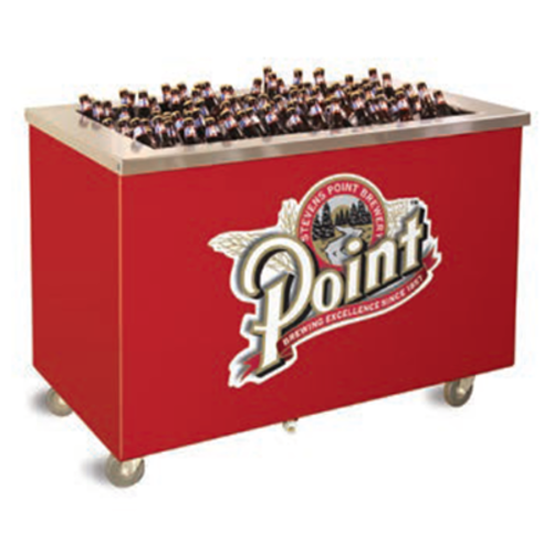 Reflections Beverage Center, 36"L x 30"W x 36"H, 5" deep 20-gauge stainless steel cold pan, holds (2) 12" x 20" pans, interlocking mechanism included for interlocking with other Reflections units, 14-gauge stainless steel top, fully welded square turndowns on all sides, molded FRP body (color to be specified), enclosed base, (4) 4" plate casters (swivel with brakes), 3/4" FPT drain ball valve, NSF, ANSI, Made in USA