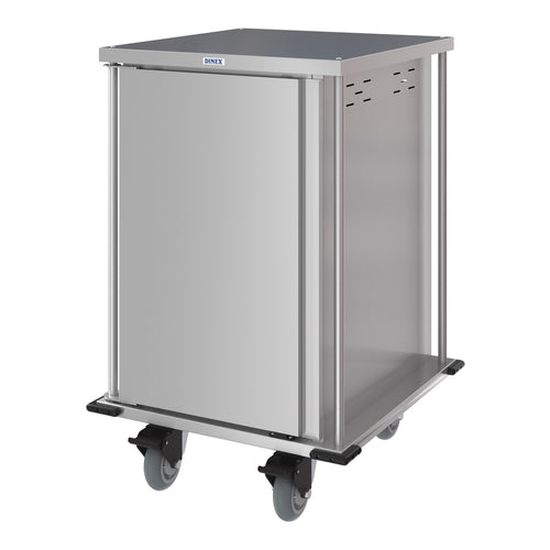 TQ Compact Meal Delivery Cart, (1) door, 1-compartment, 46-2/3"H, enclosed, (14) tray capacity, designed to hold multiple tray sizes (12" x 19", 12" x 20",14" x 18", 15" x 20" & DXRST152003), 4-3/4" tray height spacing, two trays per slide, vertical push handles, vented side panels, gravity locking door with door stop, corner bumpers, (4) 6" Performa casters (2 rigid, 2 swivel with Tech lock brakes) with noise suppression bearing covers, stainless steel construction, NSF, Made in USA