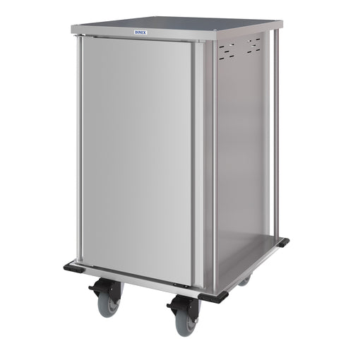 TQ Compact Meal Delivery Cart, (1) door, 1-compartment, 51-2/5"H, enclosed, (16) tray capacity, designed to hold multiple tray sizes (12" x 19", 12" x 20",14" x 18", 15" x 20" & DXRST152003), 4-3/4" tray height spacing, two trays per slide, vertical push handles, vented side panels, gravity locking door with door stop, corner bumpers, (4) 6" Performa casters (2 rigid, 2 swivel with Tech lock brakes) with noise suppression bearing covers, stainless steel construction, NSF, Made in USA