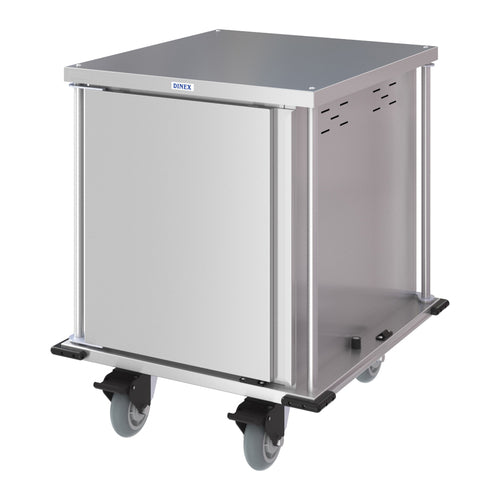 TQ Compact Meal Delivery Cart, pass thru, (1) door, 1-compartment, 37-1/6"H, enclosed, (10) tray capacity, designed to hold multiple tray sizes (12" x 19", 12" x 20",14" x 18", 15" x 20" & DXRST152003), 4-3/4" tray height spacing, two trays per slide, vertical push handles, vented side panels, gravity locking door with door stop, corner bumpers, (4) 6" Performa casters (2 rigid, 2 swivel with Tech lock brakes) with noise suppression bearing covers, stainless steel construction, NSF, Made in USA