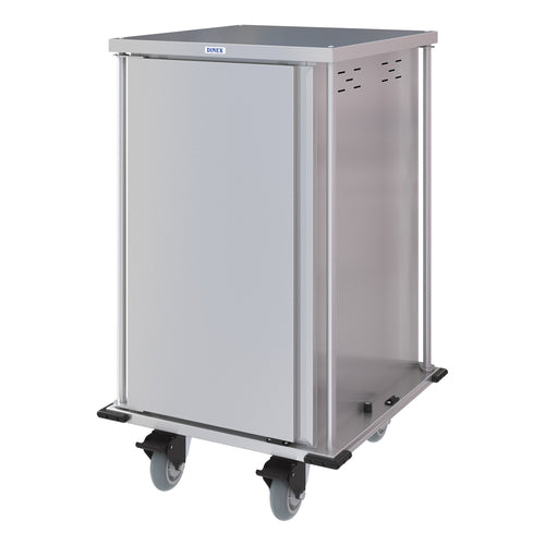 TQ Compact Meal Delivery Cart, pass thru, (1) door, 1-compartment, 51-2/5"H, enclosed, (16) tray capacity, designed to hold multiple tray sizes (12" x 19", 12" x 20",14" x 18", 15" x 20" & DXRST152003), 4-3/4" tray height spacing, two trays per slide, vertical push handles, vented side panels, gravity locking door with door stop, corner bumpers, (4) 6" Performa casters (2 rigid, 2 swivel with Tech lock brakes) with noise suppression bearing covers, stainless steel construction, NSF, Made in USA