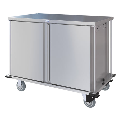 TQ Compact Meal Delivery Cart, (2) door, 2-compartment, 41-9/10"H, enclosed, (24) tray capacity, designed to hold multiple tray sizes (12" x 19", 12" x 20", 14" x 18", 15" x 20" & DXRST152003), 4-3/4" tray height spacing, two trays per slide, vertical push handles, vented side panels, gravity locking door with door stop, corner bumpers, (4) 6" Performa casters (2 rigid, 2 swivel with Tech lock brakes) with noise suppression bearing covers, stainless steel construction, NSF, Made in USA