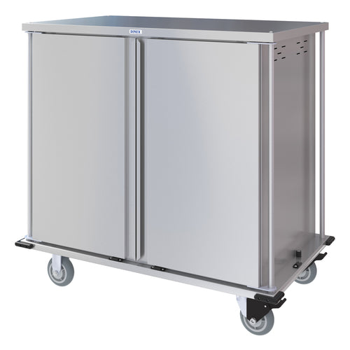 TQ Compact Meal Delivery Cart, (2) door, 2-compartment, 51-2/5"H, enclosed, (32) tray capacity, designed to hold multiple tray sizes (12" x 19", 12" x 20", 14" x 18", 15" x 20" & DXRST152003), 4-3/4" tray height spacing, two trays per slide, vertical push handles, vented side panels, gravity locking door with door stop, corner bumpers, (4) 6" Performa casters (2 rigid, 2 swivel with Tech lock brakes) with noise suppression bearing covers, stainless steel construction, NSF, Made in USA