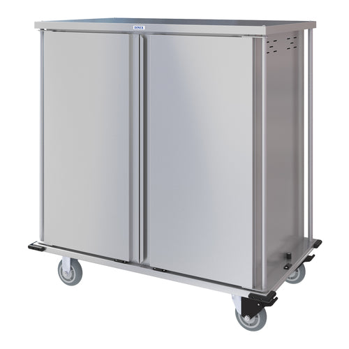 TQ Compact Meal Delivery Cart, (2) door, 2-compartment, 56-1/6"H, enclosed, (36) tray capacity, designed to hold multiple tray sizes (12" x 19", 12" x 20", 14" x 18", 15" x 20" & DXRST152003), 4-3/4" tray height spacing, two trays per slide, vertical push handles, vented side panels, gravity locking door with door stop, corner bumpers, (4) 6" Performa casters (2 rigid, 2 swivel with Tech lock brakes) with noise suppression bearing covers, stainless steel construction, NSF, Made in USA