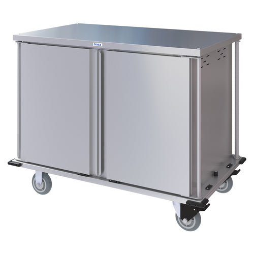 TQ Compact Meal Delivery Cart, pass thru (2) door, 2-compartment, 41-9/10"H, (24) tray capacity, designed to hold multiple tray sizes (12" x 19", 12" x 20", 14" x 18", 15" x 20" & DXRST152003), 4-3/4" tray height spacing, two trays per slide, vertical push handles, vented side panels, gravity locking door with door stop, corner bumpers, (4) 6" Performa casters (2 rigid, 2 swivel with Tech lock brakes) with noise suppression bearing covers, stainless steel construction, NSF, Made in USA