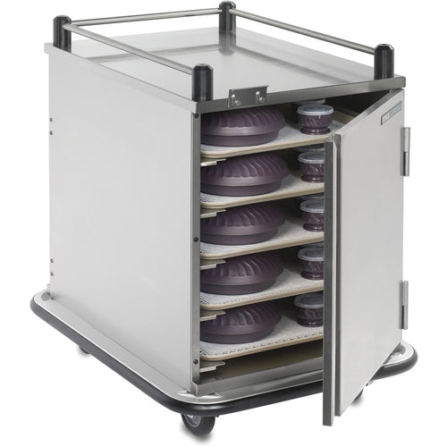 TVL Tray Delivery Cart, (1) door, 1-compartment, (16) tray capacity, designed to hold multiple tray sizes 14" x 18", 15" x 20", 12" x 19", 12" x 20", 5" tray height spacing, two trays per slide, adjustable tray slides, interchangeable rack system, drop down latch door design, bottom mounted floor drain, perimeter bumper frame, (4) 5" Performa casters with sealed stainless steel bearings (2 rigid, 2 swivel with side lock brakes), stainless steel construction, CSA