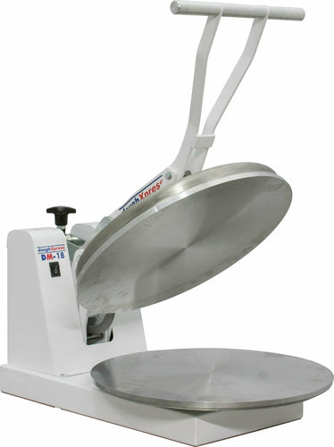(11063) Economy Pizza Dough Press, manual, clamshell design, up to 18" diameter, uncoated upper & lower aluminum platens, upper platen heats up to 200° F, digital timer & temperature controls, infinite range thickness adjustment, illuminated power on/off switch, heat indicator light, powder coated white finish, 1150 watts, 9.8 amps, 120v/60/1-ph, NEMA 5-15P, CE, cETLus, ETL-Sanitation, Made in USA