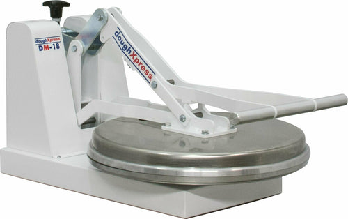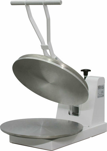 (70443) Economy Pizza Dough Press, manual, clamshell design, up to 18" diameter, uncoated upper & lower aluminum platens, cold press, infinite range thickness adjustment, powder coated white finish, ETL-Sanitation, Made in USA