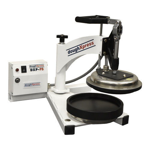 (10858) Pizza Dough Press, manual, up to 8" dia., non-stick platens, temperature preset to 430F, on/off switch, heat light indicator, white powder coated unit, 1750 watts, 120V/50/60/1-ph, 14.6 amps, cord with 5-15P NEMA plug, cETLus, ETL-Sanitation, Made in USA