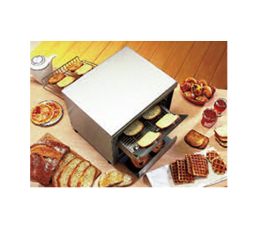Roller Grill Conveyor Bread & Bagel Toaster, 540 toasts per hour, adjustable 1-1/4" - 3-1/2" opening, 12" wide conveyor belt, quartz infrared heat, independent top and bottom heat activation, adjustable conveyor speed, crumb tray, pilot light, adjustable feet, stainless steel construction, UL, cULus