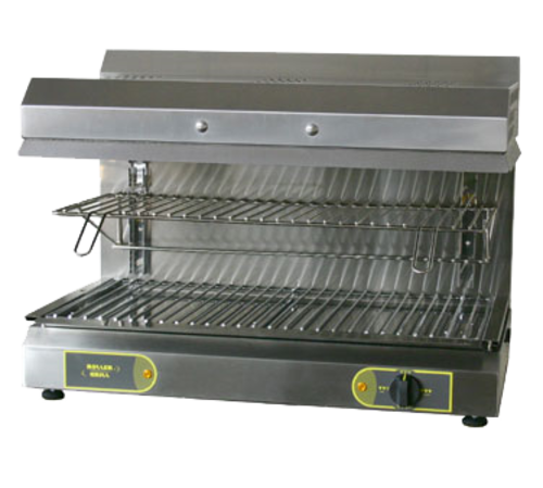 Roller Grill Finishing Oven, countertop, electric, 32"L, pull out bottom shelf with wire rack, adjustable wire shelf, 12 quartz tube heating elements, 2 zone heat control, stainless steel construction, 4" adjustable legs, 208/240v/60/3-ph, 13.0/15.0 amps, 5.0kW, cord only/no plug, cETLus, ETL-Sanitation