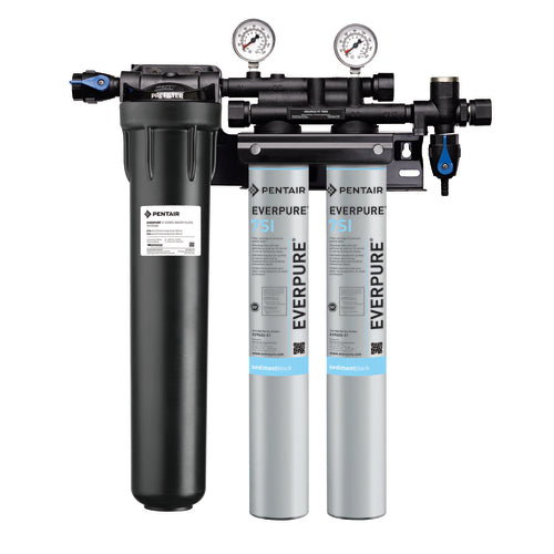 Insurice® Water Filtration System, Insurice® PF Twin-7SI, Twin, (1) EC210 Prefilter, (2) 7SI Fibredyne® submicron carbon block cartridge (designed to prevent bacteria from entering and/reproducing in a hospital water system), inlet pressure gauge, outlet pressure gauge, 50,000 gallons, 7.0 gpm, 0.5 micron, 3/4" inlet, 3/4" outlet, NSF 42 & 53 (EV932473)