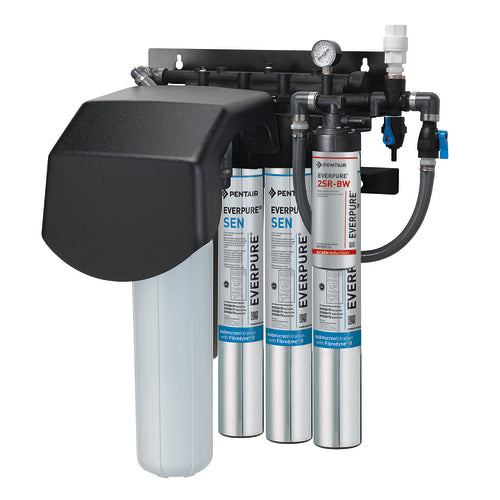 Endurance® Water Filtration System, Endurance® Quad, (1) EC210 Prefilter, (4) SEN Fibredyne® submicron carbon block cartridge, reduces chlorine, taste & odor, (1) 2SR-BW phosphate cartridge For scale reduction, outlet pressure gauge, 200,000 gallons, 15.0 gpm, 0.2 micron, 3/4" inlet, 3/4" outlet, NSF 42 & 53 (EV943732)