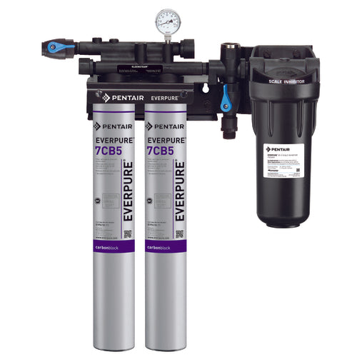 KleenSteam II Twin System, 20,000 gallon capacity, 5.0 gpm flow rate, total system for steamers prevents limescale formation, (2) 7CB5 carbon filters, (1) SS-10 scale inhibitor Cartridge, dip tube, (2) 2.2 lbs. canisters ScaleKleen® (EV979722)