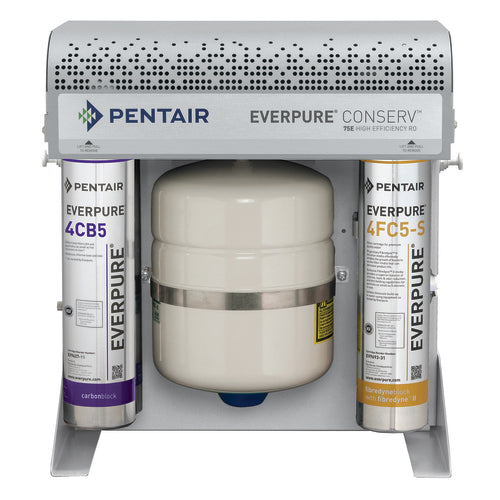 Conserv® Reverse Osmosis System, Conserv® 75E, (1) 4FC5 Fibredyne® submicron carbon block cartridge, reduces chlorine, taste & odor, (1) 4CC calcium carbonate cartridge, (1) GRO-75EN RO cartridge, removes 95% of TDS, (1) onboard RO water storage tank, blending valve, (1) 4CB5 carbon block post filter, .5 gpm, 3/8" inlet, 3/8" outlet, NSF 42 & 58, cUL Listed (EV997700)