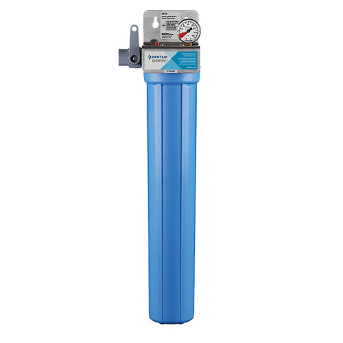 FX Water Filtration System, FX-12, Single, (1) CTO-20 activated-carbon cartridge, reduces chlorine & sediment, outlet pressure gauge, mounting bracket, 30,000 gallons, 3.0 gpm, 0.5 micron, 1/2" inlet, 1/2" outlet, NSF 42 (160-50020)