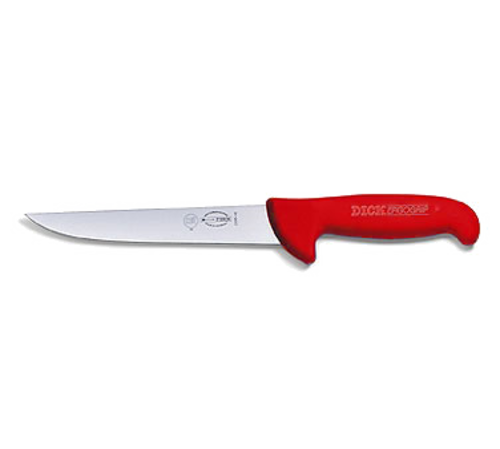 Ergogrip Sticking Knife, 8" blade, stamped, high carbon stainless steel, red plastic handle, NSF